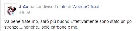 Non tarda ad arrivare la prima replica, quella di J-Ax che, accompagnato da una foto col dito medio sollevato scrive:
