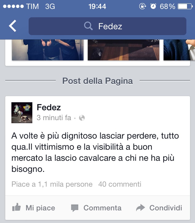 Poco dopo replica anche Fedez ma poi il suo post misteriosamente sparisce dal web…