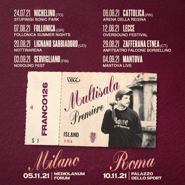 Franco126 annuncia le prime date del Multisala Premiere, il tour che partirà da luglio e attraverserà l’italia per tutta l’estate.