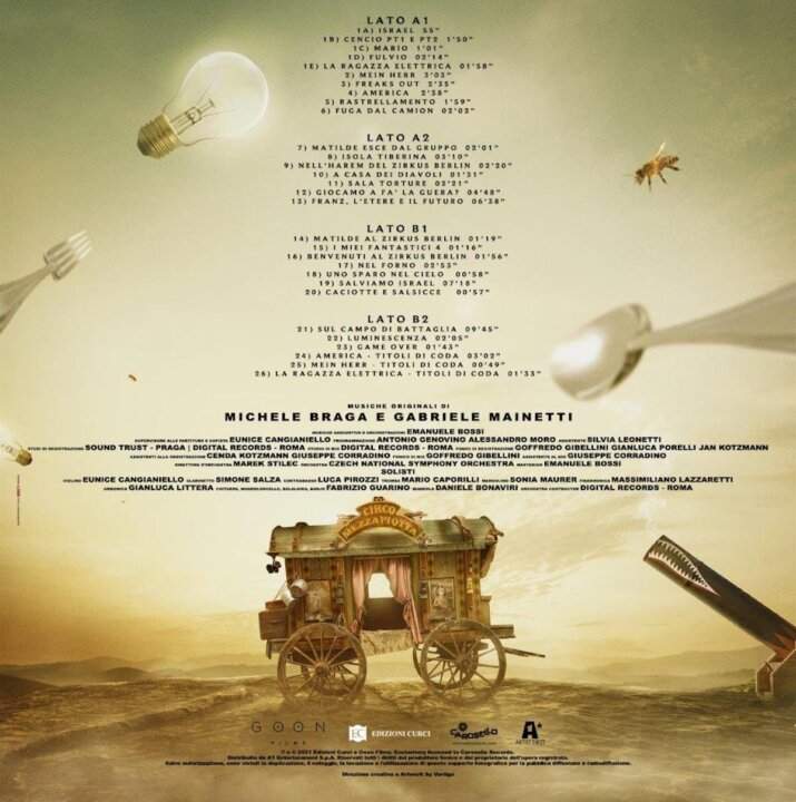 Il doppio vinile di Freaks Out Original Soundtrack è in vendita dal 12 novembre 2021, con contenuti esclusivi. Qui di seguito potete vedere il retro del vinile.
