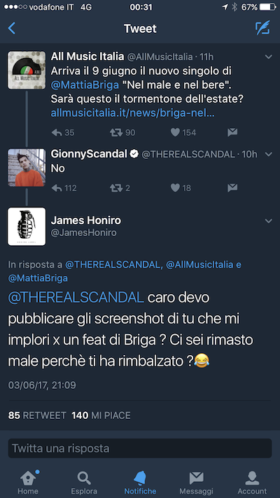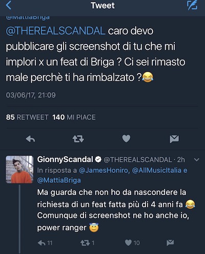 “Caro devo pubblicare gli screenshot di tu che mi implori per un feat di Briga? Ci sei rimasto male perché ti ha rimbalzato?”