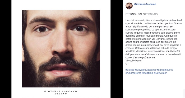 “Uno dei momenti più emozionanti prima dell’uscita di ogni album è la condivisione della copertina. Questo album significa molto per me e porta con sé speranze e prospettive. La speranza di essere riuscito in questi mesi a tradurre ogni piccola parte della mia anima in musica e parole. Con questo cofanetto condivido con voi Giovanni, senza filtri, senza paura, irradiato dalla luce dell’amore, un amore eterno in cui ciascuno di noi deve imparare a credere. Coltivare una relazione richiede tempo, sacrificio, dedizione, determinazione, ma i benefici del “prendersi cura” durano in eterno e riscaldano il cuore. L’amore può salvare.
