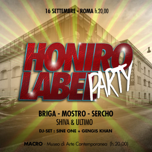 Sabato 16 settembre 2017 andrà in scena Honiro Label Party. L’etichetta tra le più vitali della scena hip hop darà vita ad un evento molto originale. L’arte contemporanea e la musica dei “suoi” artisti si incontreranno a Roma.