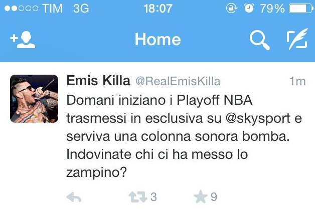 Dopo Maracanà per la Coppa del Mondo di calcio 2014, Emis Killa torna a legare il suo nome a Sky e al mondo dello sport firmando la colonna sonora che la rete televisiva utilizzerà come sigla in occasione dei Playoff NBA.