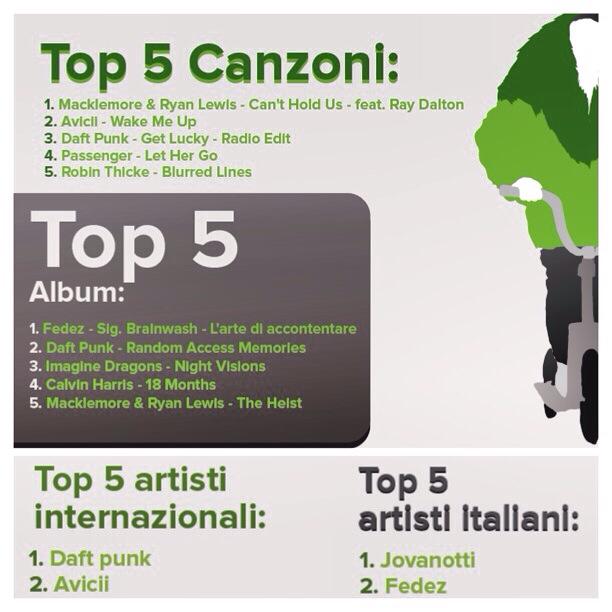 Il 17 febbraio arriva la classifica degli artisti più ascoltati di Spotify e, dietro ad un mostro sacro come Jovanotti, nella sezione italiani, arriva lui, Fedez. Il suo album è al primo posto nella top 5 degli album più ascoltati.