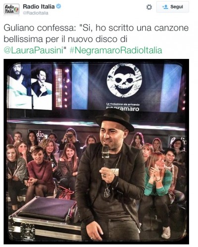 Giuliano Sangiorgi dei Negramaro ospite a Radio Italia ha confermato l’ipotesi lanciata nei giorni scorsi da Optimagazine che lo vedrebbe tra gli autori del disco di Laura.