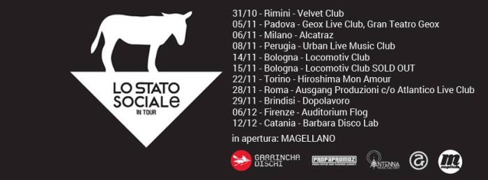 Lo Stato Sociale sarà in tour nei club italiani a partire dal 31 ottobre, dopo il dopo il successo del tour estivo – 70.000 presenze in 32 date su e giù per la penisola – che si è concluso il 20 settembre a Ferrara con il concerto in piazza Municipale in ricordo Federico Aldrovandi.