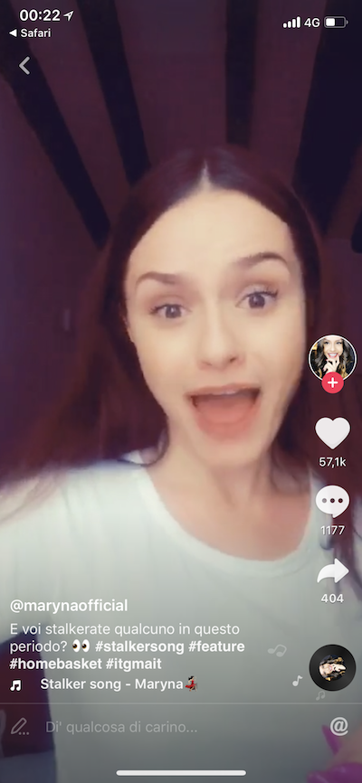 Succede quindi che una di queste, l’italo spagnola Maryna ( @marynaofficial su Musical.ly) che vanta quasi 400.000 seguaci e oltre 3.600.000 like (che sul network si traducono in cuori) posta un video in cui canticchia queste strofe: