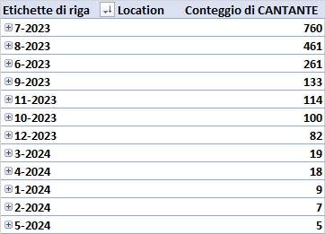 Chiudo con questa tabella pivot con il conteggio dei concerti dei vari mesi: