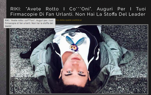 Quest’anno per la serie “nuove amicizie strette” la nostra Mosca Tze Tze ha redarguito per ben due volte il pop idol del momento, Riki.