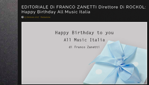 All Music Italia infatti ha visto la luce con il suo primo articolo il 22 febbraio del 2014, sono solo 3 anni e mezzo eppure sembra passata un’eternità. Quest’anno il nostro sito ha avuto l’onore di ricevere come regalo di compleanno un Editoriale da colui che è il padre di ogni giornalista/blogger musicale sul web, Franco Zanetti, Direttore editoriale di Rockol. Grazie ancora Franco!