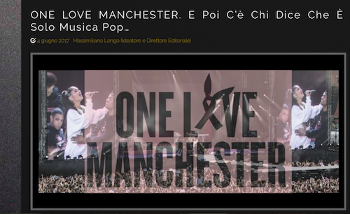 Parliamo dello straordinario concerto di Manchester contro il terrorismo. L’urlo dell’essere umano contro il terrorismo. Un urlo in musica e, finché ci sarà musica, ognuno di noi potrà sentirsi meno solo, meno vulnerabile, meno impaurito.
