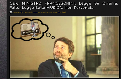 Il primo è il nostro appello al Ministro Franceschini inerente una legge che tuteli la musica italiana e gli emergenti… vedremo sei il 2018 ci porterà qualcosa di nuovo.