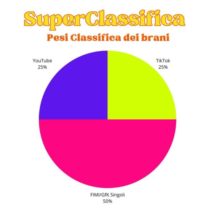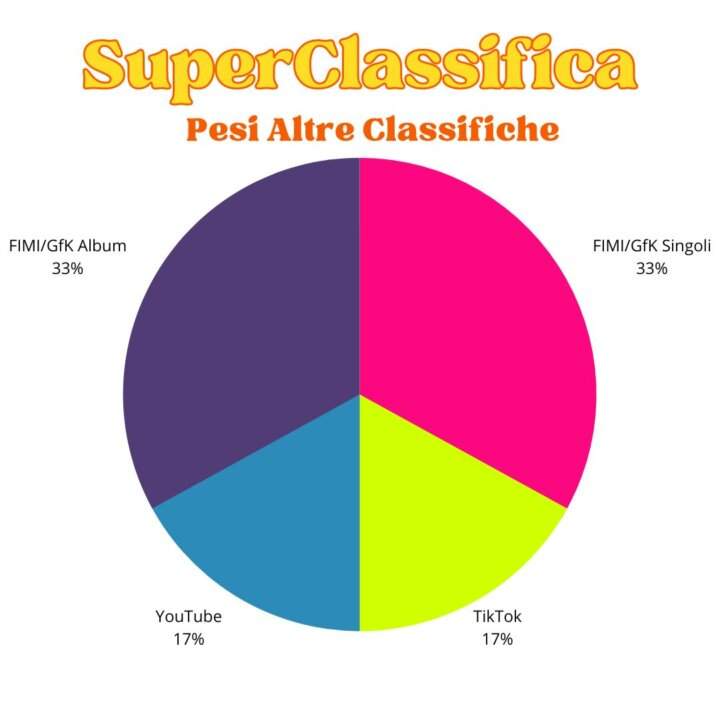 Verrà dato uno score per ogni posizione che andrà calibrato in base a un moltiplicatore stabilito secondo il peso che ogni chart avrà nella determinazione del punteggio finale attribuito al brano nella SuperClassifica. Per le classifiche di artisti, etichette e distributori verrà valutata anche la classifica degli album.