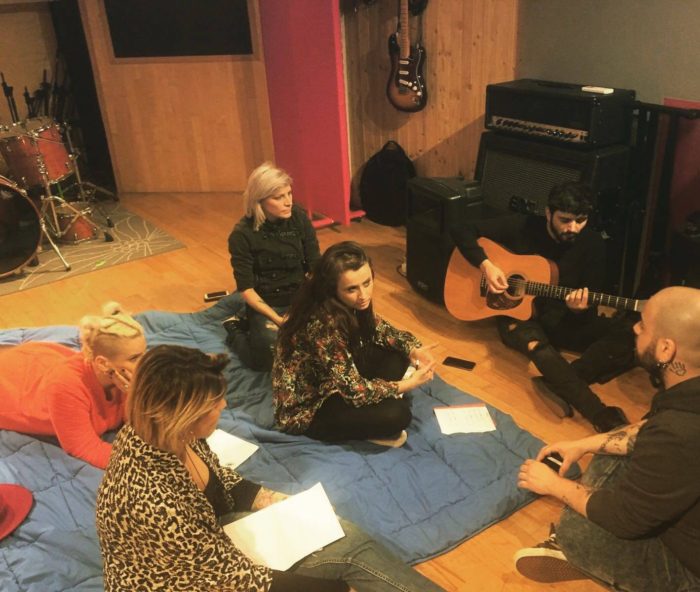 Basta cazzeggio perché qui in realtà si sta lavorando in studio e di brutto!!!! Ma non da sola questa volta perché ho davvero la gioia nel cuore mentre vi comunico che prenderò parte a un gruppo femminile con Greta Manuzi, Roberta Pompa e Verdiana. Loro hanno cominciato insieme neanche un anno fa con un brano importante che tocca il tema dell’omofobia, “L’amore merita“, e che le ha premiate con un disco d’oro. Ora ci sono dentro anche io e mi sento così gasata che potrei esplodere. Abbiamo uno staff dietro agguerritissimo, grazie a loro per l’entusiasmo viscerale che mi hanno trasmesso, grazie anche a ZIBBA con il quale abbiamo passato giorni indimenticabili in studio tra scrittura e confronti. Tra tutti noi è stato amore a prima vista, mi sembra di suonare con le ragazze da anni, credo che sarà una storia incredibile.