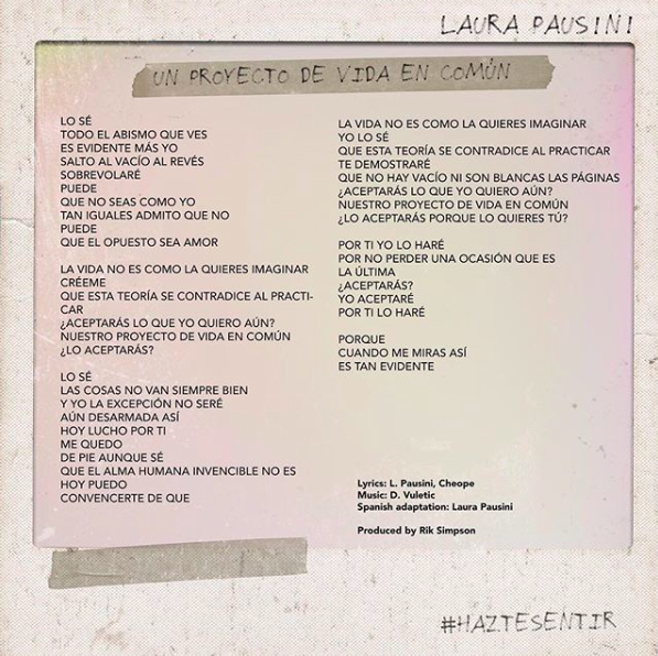 UN PROGETTO DI VITA IN COMUNE – LAURA PAUSINI – TESTO