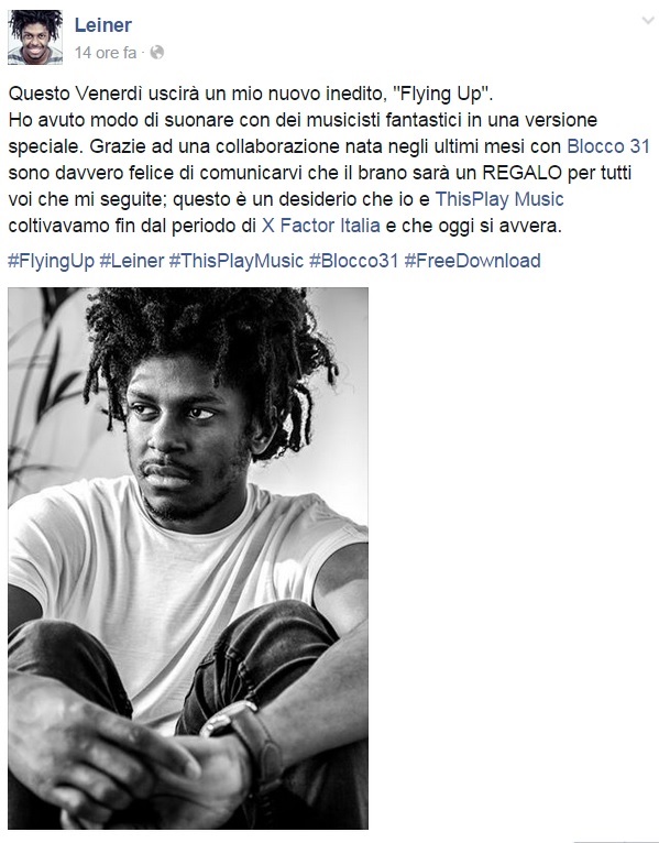 Un futuro molto prossimo, che venerdì 29/05 lo vedrà rilasciare il nuovo singolo intitolato Flying Up. Un lancio molto particolare che, grazie all’appoggio dell’etichetta This Play Music e di uno sponsor, trasforma l’uscita in un regalo collettivo, rendendo il singolo disponibile in free download.