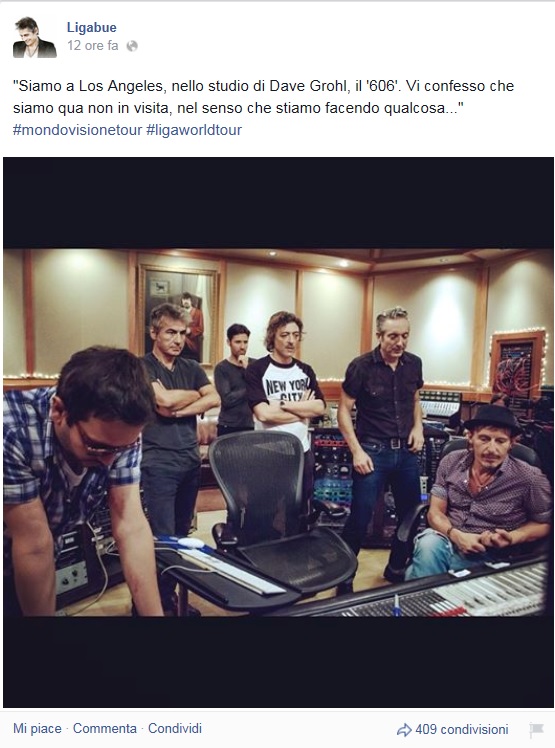 Nel frattempo Ligabue, impegnato nelle ultime tappe del tour internazionale che si conclude domenica 26 ottobre al Grand Central di Miami, ha avuto il tempo di realizzare un lavoro in studio di registrazione: infatti in queste ore si trova a Los Angeles negli studi di Dave Grohl dei Foo Fighters, ma la sua non è una visita di cortesia o scopo turistico, come lui stesso annuncia al suo pubblico attraverso la propria pagina ufficiale di Facebook: