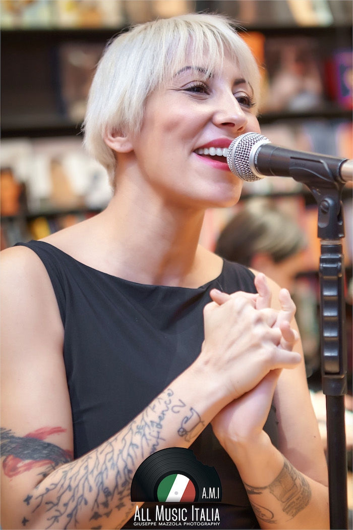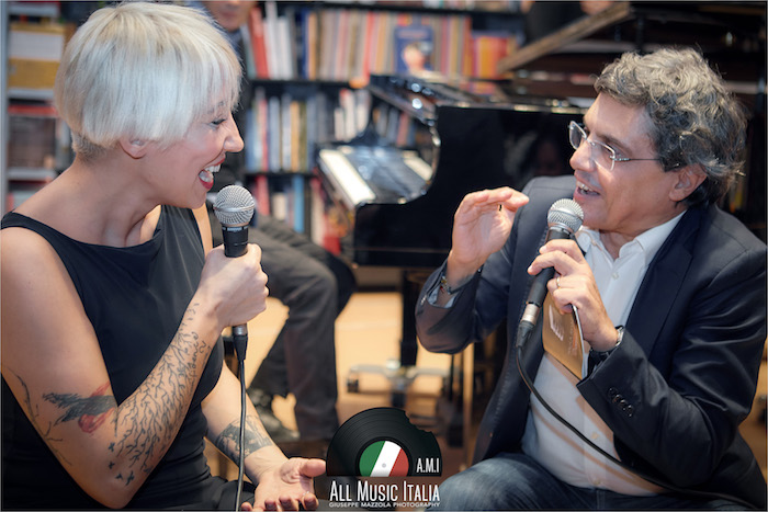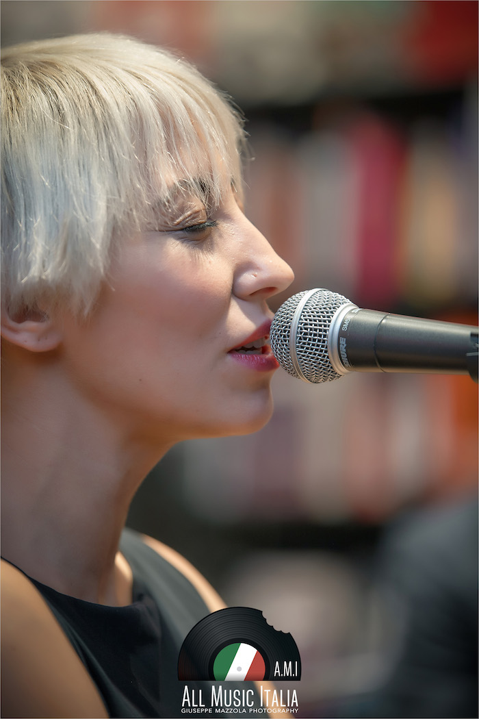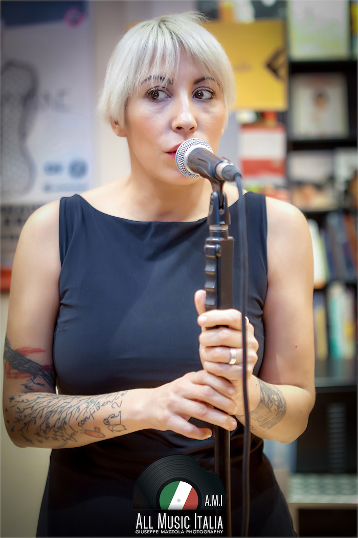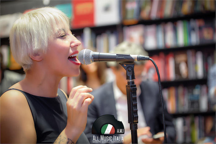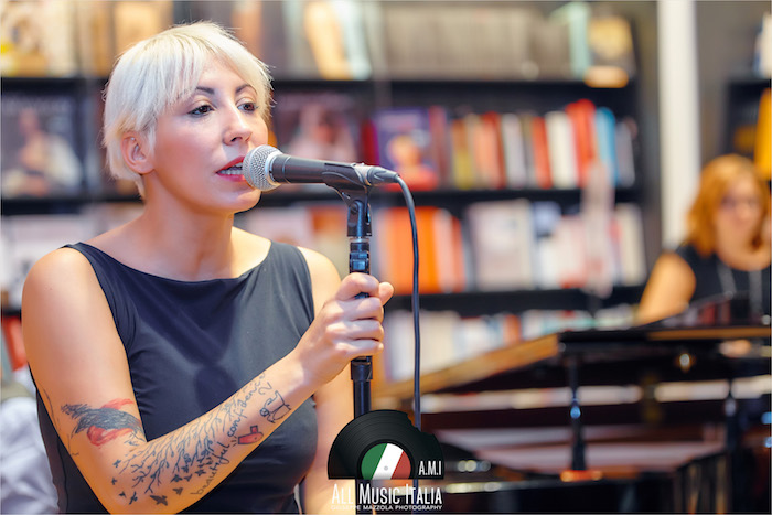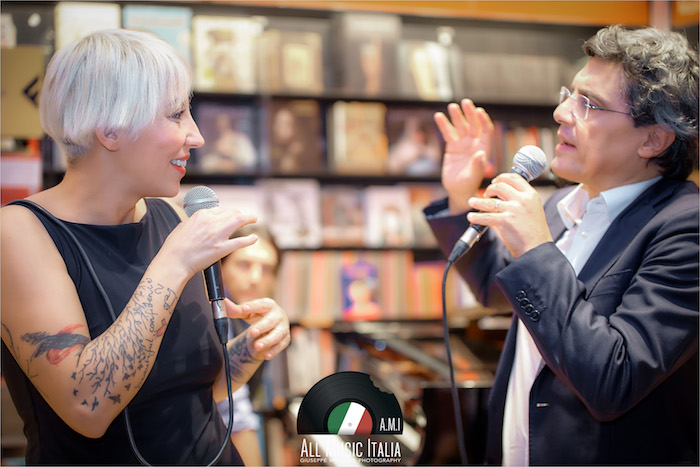 La voglia di sedersi in poltrona e chiudere gli occhi, accompagnandosi alle sue sillabe scandite, e immaginare le sue mani che creano grovigli sfiorando l’asta del microfono. Accade questo, mentre i cd rimangono stretti fra le mani e i presenti si accomodano sul pavimento della Feltrinelli di Palermo (ringrazio Roberta Cusimano, ufficio stampa di La Feltrinelli Palermo per la cortese e sempre impeccabile disponibilità verso All Music Italia), che per un attimo infinito diventa il luogo perfetto per una performance baudelairiana.