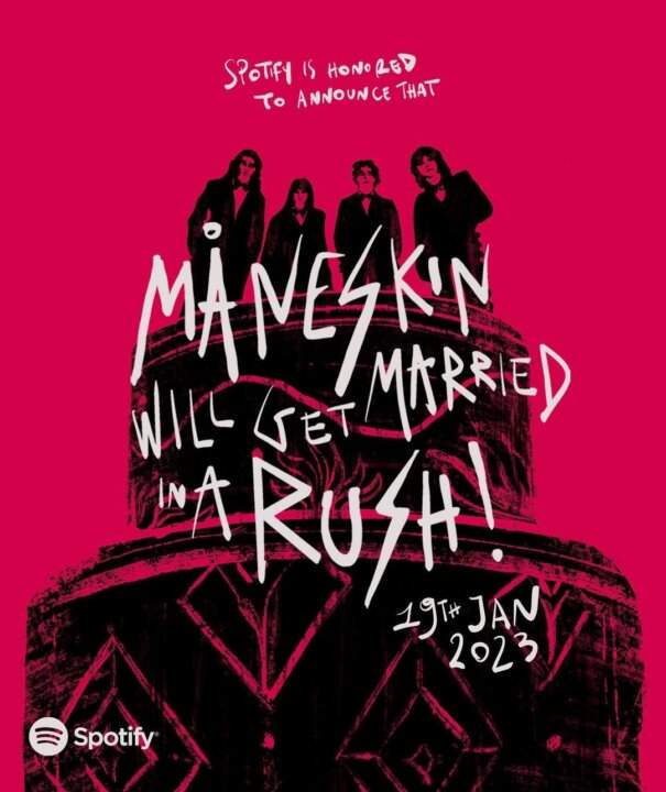 “Can’t wait to celebrate our special day on Jan. 19th 💘 Married in a RUSH!” ovvero “non vediamo l’ora di celebrare il nostro giorno speciale il 19 gennaio! ci sposeremo in fretta!” (Rush può essere inteso sia come ‘ in fretta’ che ‘con grande slancio’) ha scritto la band con Spotify che ha ribattutto sul proprio profilo italiano: “19 Gennaio festeggiamo un giorno speciale per i @maneskinofficial. Married in a RUSH! “.