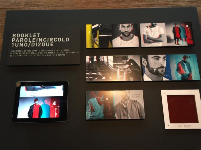 L’innovazione e la complementarità del progetto Parole in circolo viene tutta fuori quando Mengoni espone la sua idea: “Credo che in un disco debba esserci di più, non è un mero cosetto di plastica. Sono sempre stato molto attento al design, alle immagini. Mi piace contornarmi di persone giovani, miei coetanei. Ad esempio Shipmate (un gruppo creativo indipendente composto da Luca Paternoster Omodei, Giuseppe Muschio Schiavone e Riccardo Bellei, ndr), i ragazzi dello Ied, di altre università grafiche. Tra l’altro avevo già collaborato con costumisti e grafici giovani grazie ai miei vecchi dischi, la preistoria!“.
