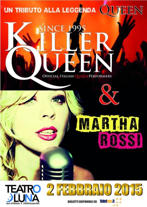 Dopo la collaborazione nel Tour dello scorso anno, Martha Rossi e i Killer Queen, dal 1996 tribute band ufficiale (italiana) della storica band inglese, torneranno a duettare per un concerto speciale il prossimo 2 febbraio 2015 al Teatro della Luna di Assago.