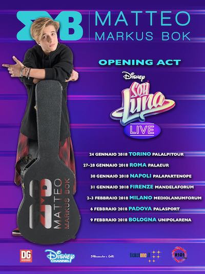 Partendo da Soy Luna, la telenovelas per teen agers argentina trasmessa da Disney Channel che negli ultimi anni ha raccolto numeri da record, Matteo Markus Bok è stato scelto come opening act per tutte le date italiane del tour di Soy Luna. Qui di seguito trovate le date:
