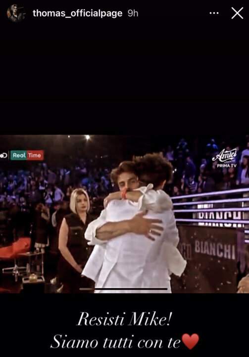 Thomas ha pubblicato una foto in cui lui e Mike si abbracciano dentro lo studio di Amici con questo messaggio: