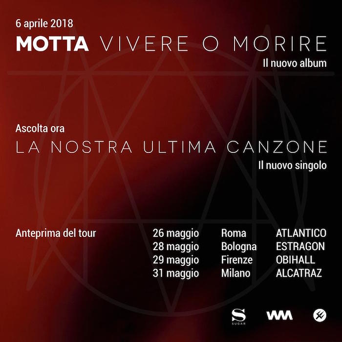Adesso, Motta è pronto a tornare sulla scena musicale con un nuovo lavoro. L’uscita del disco è stata anticipata dalla pubblicazione a gennaio di Ed è quasi come essere felice (qui potete vedere il video). Ora, arriva il singolo La nostra ultima canzone. Con questi due brani, Motta ha iniziato a svelare qualcosa di Vivere o Morire, di cui al momento si conosce davvero ben poco. Oltre al titolo e alla data d’uscita, si sa solo che per la produzione del disco il cantautore toscano ha collaborato con Taketo Gohara, noto ai più per aver già prodotto dischi di Vinicio Capossela, Brunori Sas, Verdena e Marta Sui Tubi.