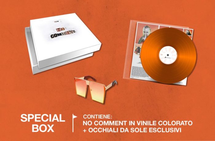 Ora No comment, disco prodotto da Salmo, Low Kidd, Dj Slait, Zef, The Supreme e Denny the Cool, e uscito per Machete Empire Records con distribuzione Sony Music Italia, torna a distanza di due mesi dall’uscita torna in vendita in una speciale edizione in esclusiva su Amazon… un vinile colorato contenuto in una special box con all’interno anche i tipici occhiali usati dal rapper.