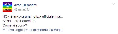 L’indiscrezione è stata lanciata in rete dall’Arca di Noemi, fan club ufficiale della cantante romana, con un post su Facebook: