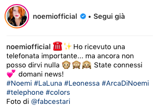 Infine proprio oggi la rossa cantante ha rivelato su Instagram che domani ci sarà un importante annuncio a seguito di una telefonata di lavoro… e guarda caso domani c’è una delle ultime puntate del pomeridiano di Amici…