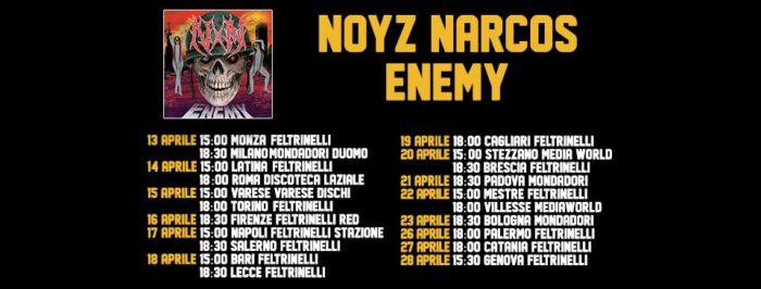 A partire dal 13 aprile Noyz Narcos partirà per un lungo instore tour di presentazione del nuovo album. Qui a seguire le date: