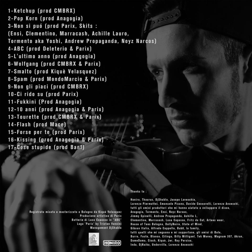 Ben 17 tracce prodotte in larga parte dallo stesso Parix oltre che da nomi di peso come quello dell’astro nascente Anagogia o di Mondo Marcio, chiamati qui in veste di producers.