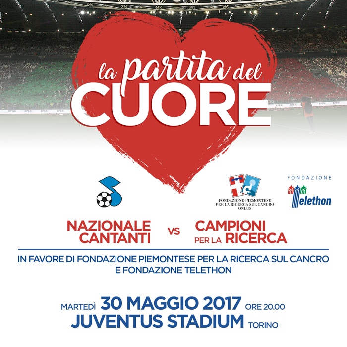 Nei giorni scorsi si è aperta la prevendita dei biglietti per la Partita del Cuore 2017. L’appuntamento è per il 30 maggio allo Juventus Stadium di Torino alle ore 20:00 e si sfideranno la Nazionale Cantanti ed i Campioni Per La Ricerca.