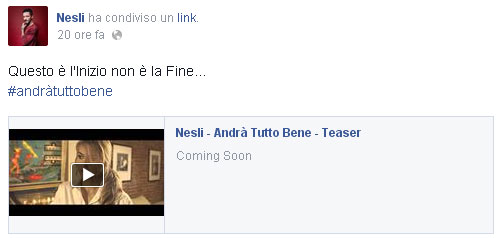 Dal 28 novembre 2015 sarà in rotazione radiofonica Andrà tutto bene, il nuovo singolo di Nesli che anticipa l’omonimo album di inediti in uscita ad inizio 2015.