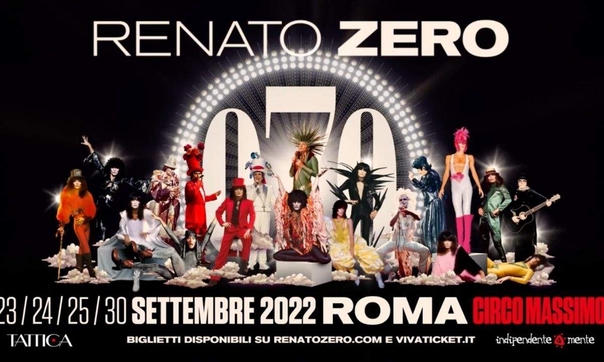 Dopo il successo degli spettacoli live di Zero il folle in tour, Renato Zero tornerà live esibendosi per la prima volta al Circo Massimo di Roma con Zerosettanta, un’imperdibile festa live con i fan per celebrare i suoi 55 anni di carriera.