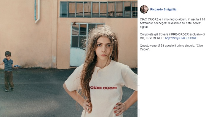 Il 31 agosto Riccardo Sinigallia tornerà in radio e su tutte le piattaforme digitali con Ciao Cuore, nuovo singolo che da il titolo anche al nuovo album che uscirà per Sugar il prossimo 14 settembre.