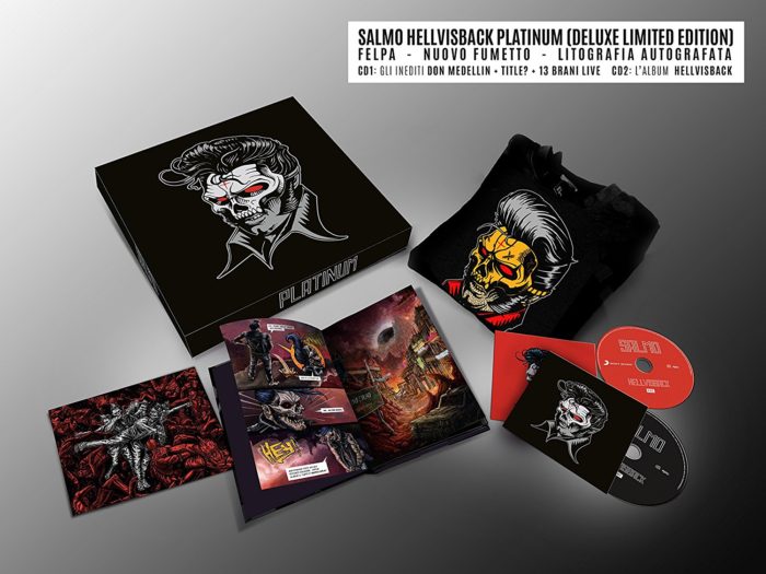 Questa versione conterrà l’album originale, il secondo cd con gli inediti e le tracce live, il nuovo fumetto, una felpa di Salmo, una litografia autografata il tutto racchiuso in un elegante cofanetto.