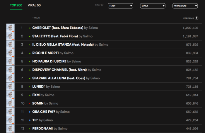 Salmo è appena tornato con un nuovo album, Playlist, uscito venerdì (qui la nostra recensione) ed è già record assoluto su Spotify. Il disco è l’album più stremmato in Italia con 8 brani nella Global Chart.