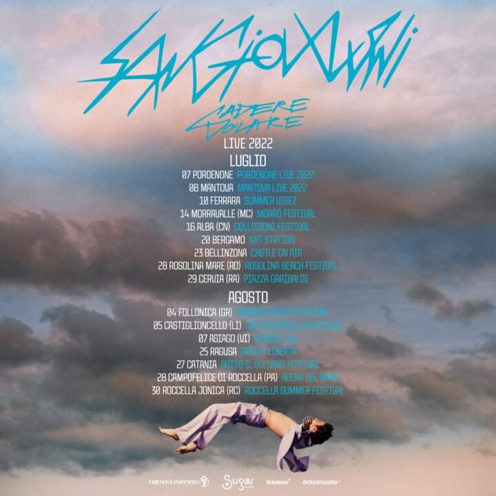 Sangiovanni Tour 2022… annunciate le date del Cadere volare Live 2022, il tour estivo prodotto e organizzato da Friends & Partners in collaborazione con Sugar Music che porterà la musica del talent lanciato da Amici 20 in giro per tutta l’Italia.