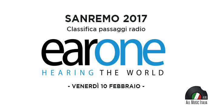 All Music Italia in collaborazione con EarOne – partner dell’industria musicale italiana che si occupa dell’elaborazione in tempo reale delle classifiche Airplay, della visualizzazione delle playlist di Radio e TV e della ricerca dettagliata sulla trasmissione dei brani – riporta la classifica dei brani più trasmessi in Radio all’indomani della terza serata di Sanremo 2017.