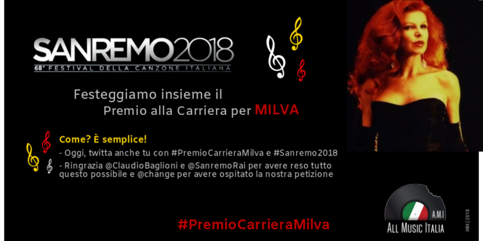 Infine ci sarà ovviamente durante il corso della serata l’agognato premio alla carriera per Milva da noi supportato attraverso l’Hashtag #PremioCarrieraMilva e una petizione da quasi 5.000 firme.