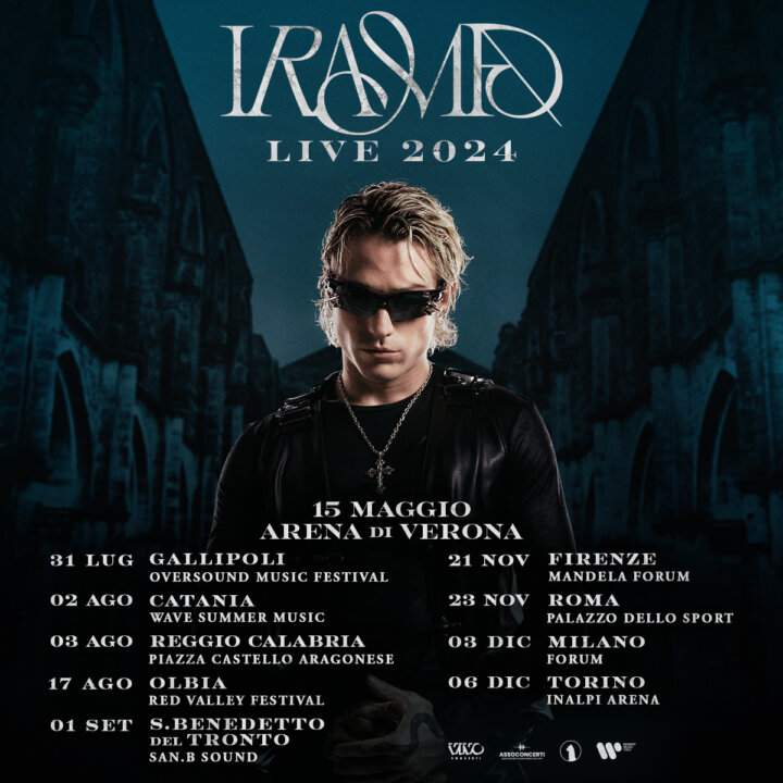 Dopo il concerto-evento all’Arena di Verona, che si terrà il 15 maggio 2024, Irama porterà infatti la sua musica sui palchi dei principali festival estivi italiani, per poi approdare nei palasport in autunno, in occasione di quattro esclusive date live a Firenze, Roma, Milano e Torino