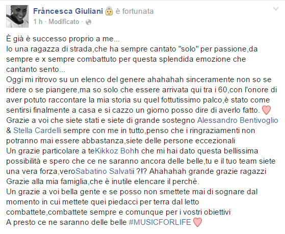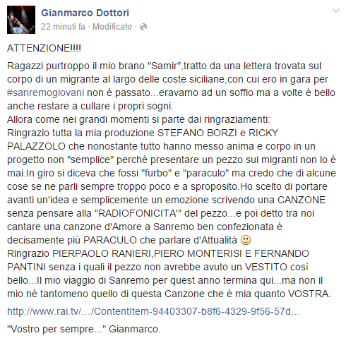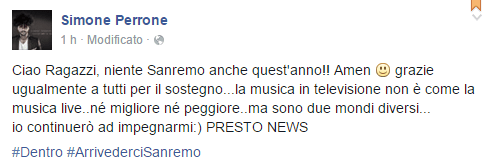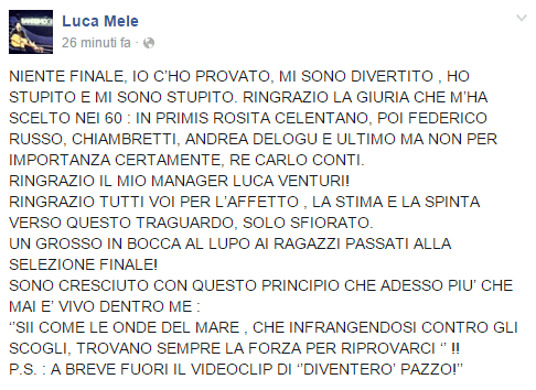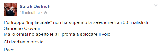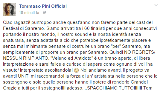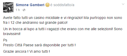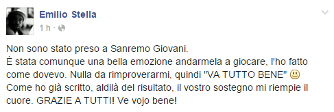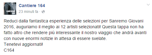 L’annuncio dei 12 finalisti del circuito Giovani del Festival di Sanremo (QUI i nomi dei prescelti) ha comprensibilmente scatenato le reazioni degli esclusi che tramite le loro pagine ufficiali hanno comunicato il risultato dell’audizione.