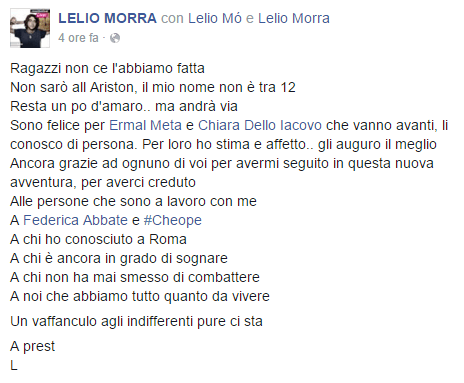 Abbiamo visitato tutte le pagine Facebook per riportarvi le dichiarazioni a caldo degli esclusi: