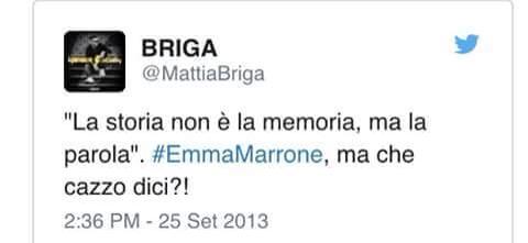 Succede però che Briga, che proprio nella puntata andata in onda ieri sera si è rifiutato di cantare un brano assegnatogli da Loredana Berté, Fuori dal tunnel di Caparezza, dicendo che era distante dalla sua visione artistica (e troppo alto per lui nella tonalità originale), allo stesso tempo però non si è tirato indietro nel duettare poco prima con Emma rappando proprio sul brano Dimentico tutto “dimenticandosi” probabilmente un suo vecchio tweet del settembre 2013 che vi riportiamo qui sotto.