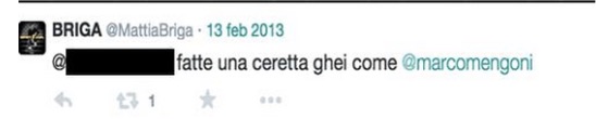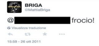 Sicuramente Twitter non è un social network che porta molta “fortuna” a Briga. Infatti già qualche settimana fa il sito Bitchyf aveva ritrovato dei suoi vecchi Tweet decisamente non molto amichevoli nei confronti dei gay, per poi vederlo duettare e abbracciarsi serenamente con Tiziano Ferro