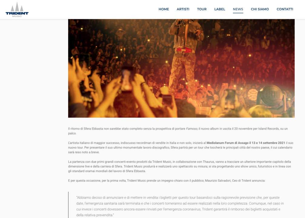 Il Ceo della nota agenzia era stato chiaro mesi fa: "Trident Music prende un impegno chiaro con il pubblico..."