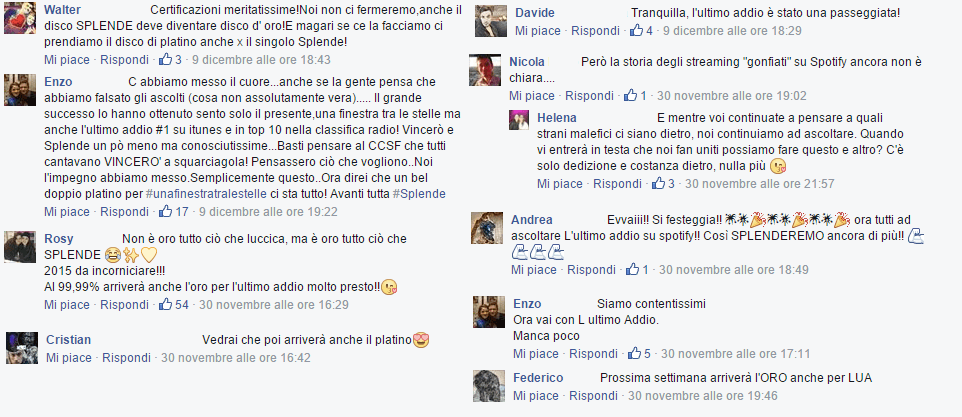 I fan di Annalisa sono convinti di essere loro a manovrare questo “gioco delle certificazioni”. Non è difficile leggerli nei gruppi Facebook anche di altri artisti, ma soprattutto nei commenti ai post della loro beniamina, dove festeggiano i traguardi raggiunti e si impegnano ad ascoltare in massa un nuovo brano da portare almeno al disco d’oro digitale. Il problema è che, fossero davvero loro, come mai le altre tifoserie non fanno lo stesso? Cosa non hanno scoperto rispetto ai fan di Annalisa?